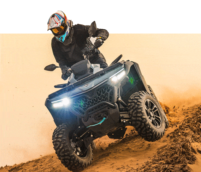 CFMOTO – Power, die bewegt. Seit 1989. Ob ATV, UTV oder Motorrad – wir liefern keine Fahrzeuge, wir liefern Adrenalin, Arbeitskraft und Abenteuer auf Rädern. Was uns auszeichnet? Langlebige Maschinen. Hochwertige Komponenten. Ein Preis-Leistungs-Verhältnis, das Maßstäbe setzt.